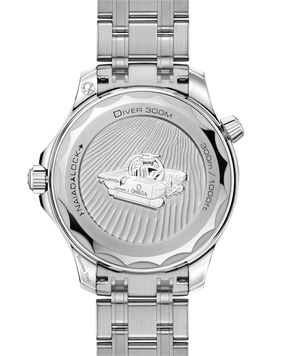 The caseback, embossed with the Nekton submarine medallion, is oriented with OMEGA’s innovative NAIAD LOCK. On this model, a stainless steel bracelet gives the divers’ watch a dressier look.Powering OMEGA’s tribute to Nekton is the exceptional Master Chronometer Calibre 8806. Tested and approved at the industry’s highest level.