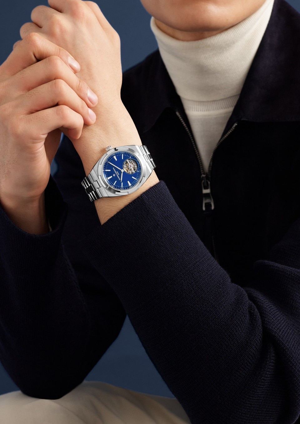 A tribute to the spirit of travel, this steel watch houses an ultra-slim movement just 5.65 millimeters thick and a tourbillon cage inspired by the Maltese cross. Fitted with a 22K peripheral rotor revealing the entire movement through the openworked caseback, this exceptional caliber offers a power reserve of more than 3 days. Thanks to its clasp and system of three easily interchangeable straps – steel, leather, and rubber – the watch can be personalized in accordance with the owner’s wishes.