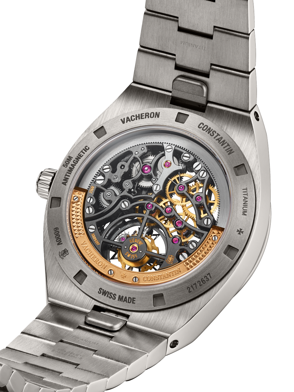 A tribute to the spirit of travel, this Grade 5 titanium watch houses an ultra-slim skeleton movement just 5.65 millimeters thick and a tourbillon cage inspired by the Maltese cross. The peripheral weight in 18K gold reveals the movement in its entirety through the openworked caseback. The exceptional NAC-treated caliber has an anthracite gray hue and a power reserve of more than 3 days. With its clasp and system of three easily interchangeable straps – Grade 5 titanium, leather, and rubber – the watch can be personalized according to the owner’s wishes.