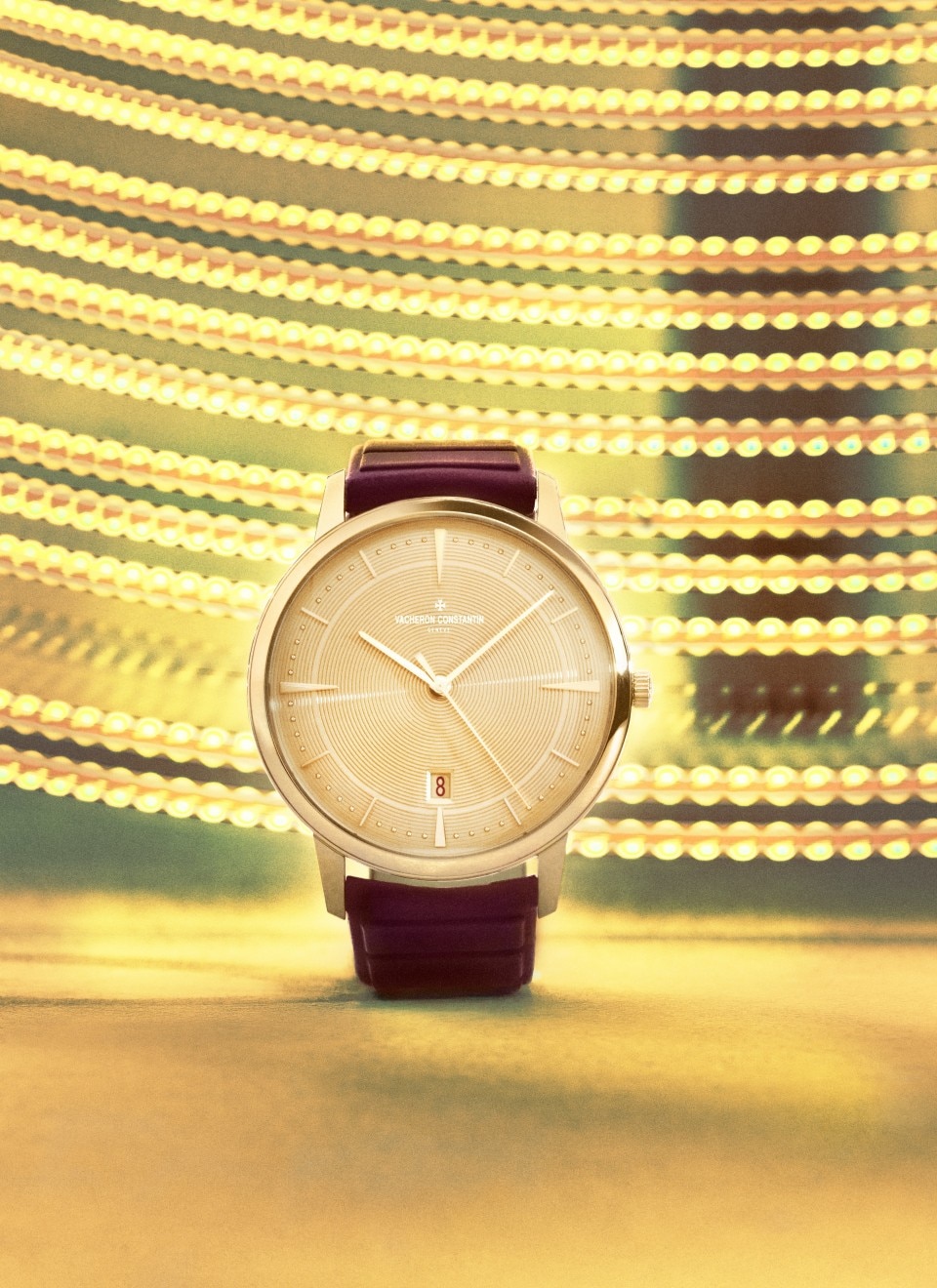 Vacheron Constantin concludes the 20th anniversary celebration of the Patrimony collection with a new 18K 3N yellow gold self-winding model, result of a collaboration with designer Ora ïto. Behind the designer’s signature concept of “Simplexity” – the art of proposing a simple response to a complex problem, of giving a simple appearance to an object involving invisible complexity, this limited edition of 100 pieces features a monochrome aesthetic with a yellow gold case framing a tone-on-tone gold-coloured dial adorned with an infinite number of concentric circles catching the light. This visually simple, circular geometry spreading like a rippling wave echoes the cambered dial surface. The model is paired with a burgundy calfskin strap, punctuated by rectangular shapes with softened angles that reinforce the vintage character of the watch and make a striking contrast with the circular geometry of the case and dial. This model is driven by in-house self-winding calibre 2450 Q6, which features an openworked oscillating weight in 22K gold inspired by the Maltese cross, visible through the sapphire caseback.