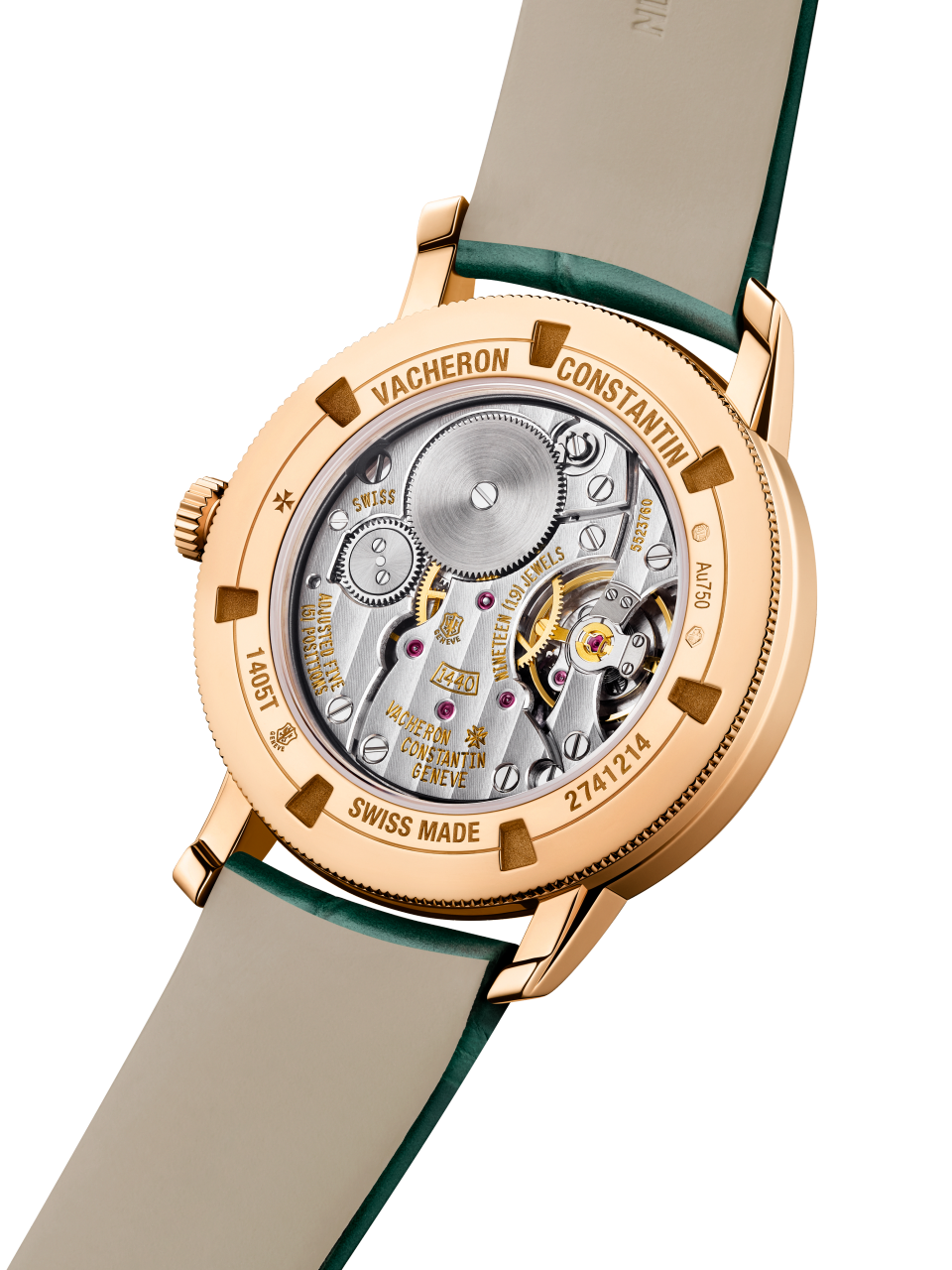 Sophisticated and sparkling, this 18K 5N pink gold watch features the iconic styling of the Traditionnelle Collection with a grooved caseback and railroad-style minute-counter. The bezel is set with 54 round-cut diamonds. The exceptional hand-finished details of the manual movement, visible through the openworked caseback, comply with the Hallmark of Geneva standards of excellence.